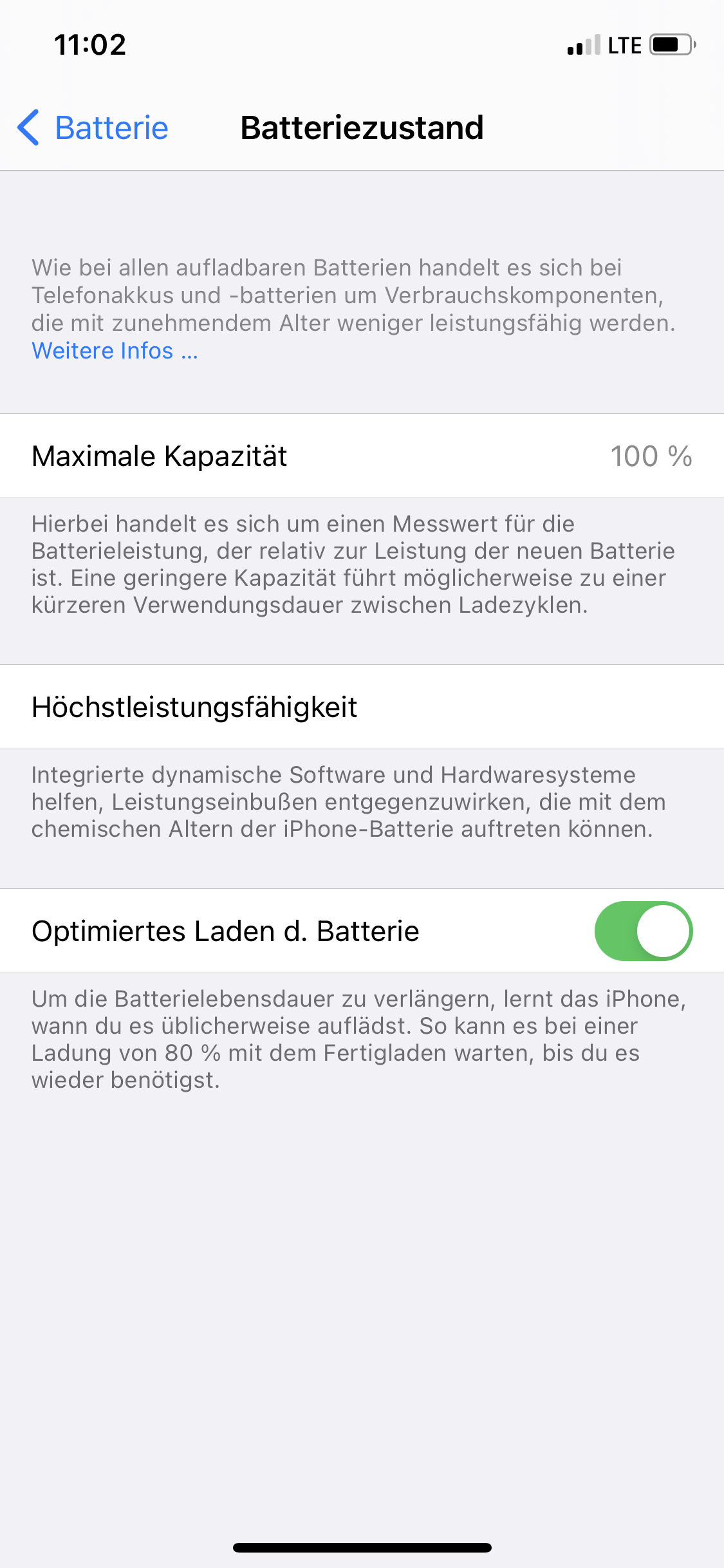 Bei dem jetzigen Austauschgerät habe ich daher gehofft ein neues Gerät zu bekommen. Nun steht bei der Akkukapazität 100%. Super! Dachte ich mir, bis ich dann sah, dass unter Batterie die Höchstleistung nicht mehr unterstützt wird. Also doch ein altes Gerät bekommen? Aber das Gerät war vorher offensichtlich doch noch nicht registriert gewesen? Oder hat die Anzeige unter Akkukapazität nichts damit zutun, dass der Akku alt ist? Habe nämlich von Fällen gelesen, wo das bereits bei einem iPhone 11/12 nach 1 1/2 Wochen das selbe stand, wie bei mir.