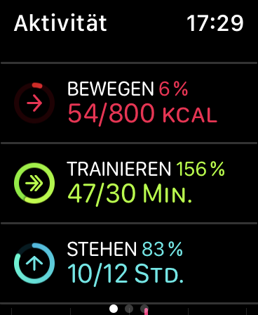 auf meiner Watch werden die Ringe für das Stehen und Training vollständig angezeigt und füllen sich im laufe des Tages. Die Anzeige für Bewegen, jedoch bleibt unverändert.