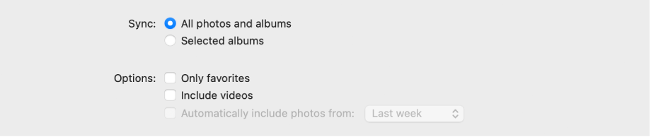Wähle „Fotos auf dein Gerät synchronisieren von“ und dann „Fotos“, „Bilder“ oder einen Ordner aus dem Einblendmenü aus.