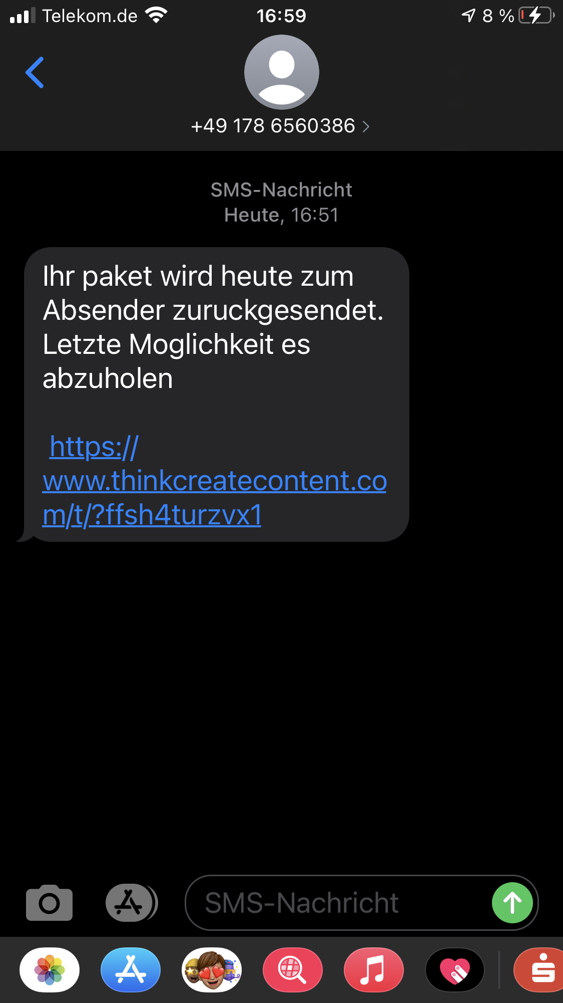 Ich bekam in den letzten Tagen mehrfach diese SMS von verschiedenen Nummern, die ich immer gelöscht habe, nur gestern habe ich in Gedanken - drauf geklickt. Es wurde zu Safari verbunden und ein blinkbanner erschien „sie wurden gehackt“.