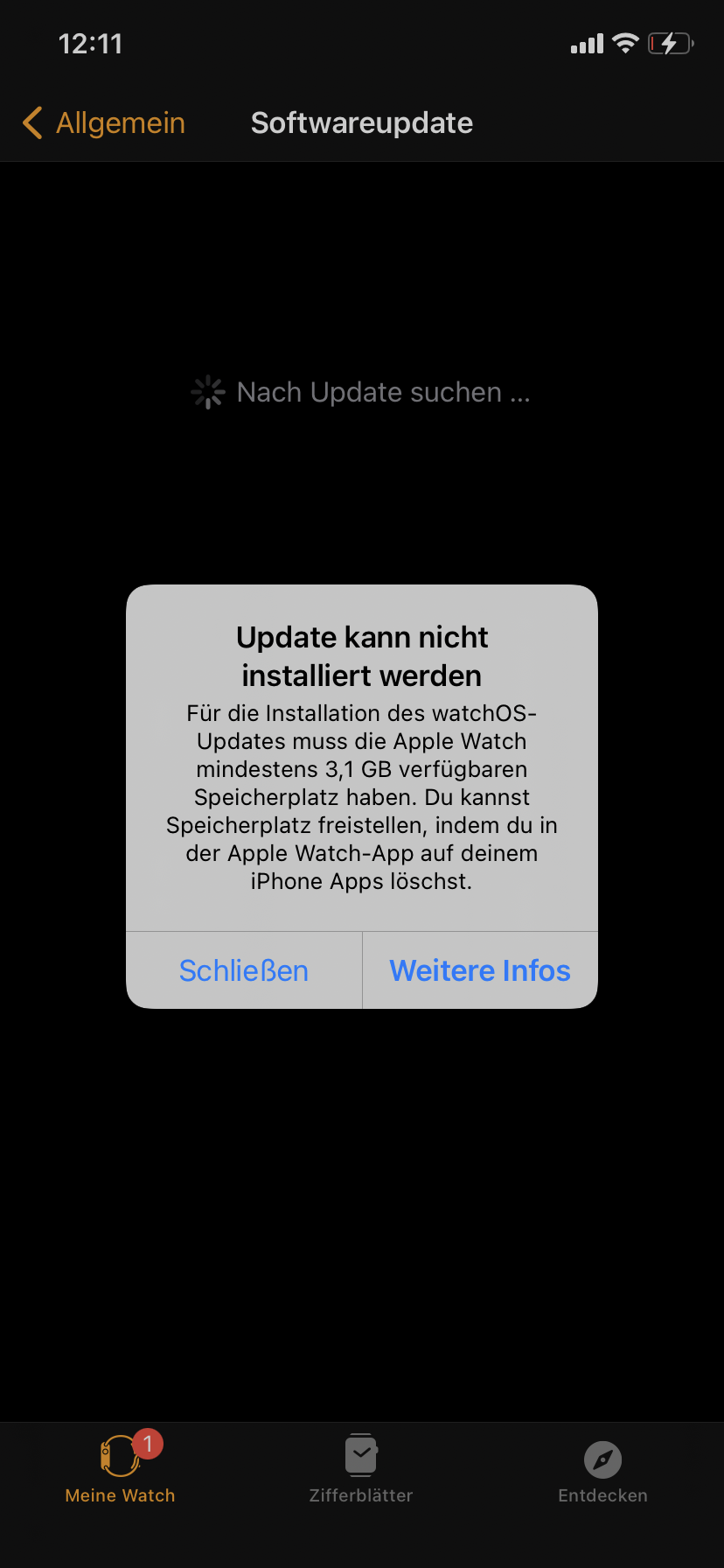 ich habe die Anweisungen des Email-Linkes befolgt und die Schritte eingehalten, aber das Update wird nicht auf meiner apple wach 3 installiert, da immer wieder der Hinweis kommt, ich hätte nicht genug Platz auf meiner Uhr. Ich habe aber keine Daten auf der Watch; bitte um Hilfe!