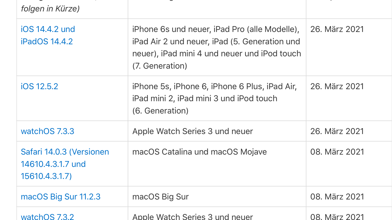 Lt. Website support.apple.com sollten meine iPhones folgende Sicherheitsupdates bekommen haben: