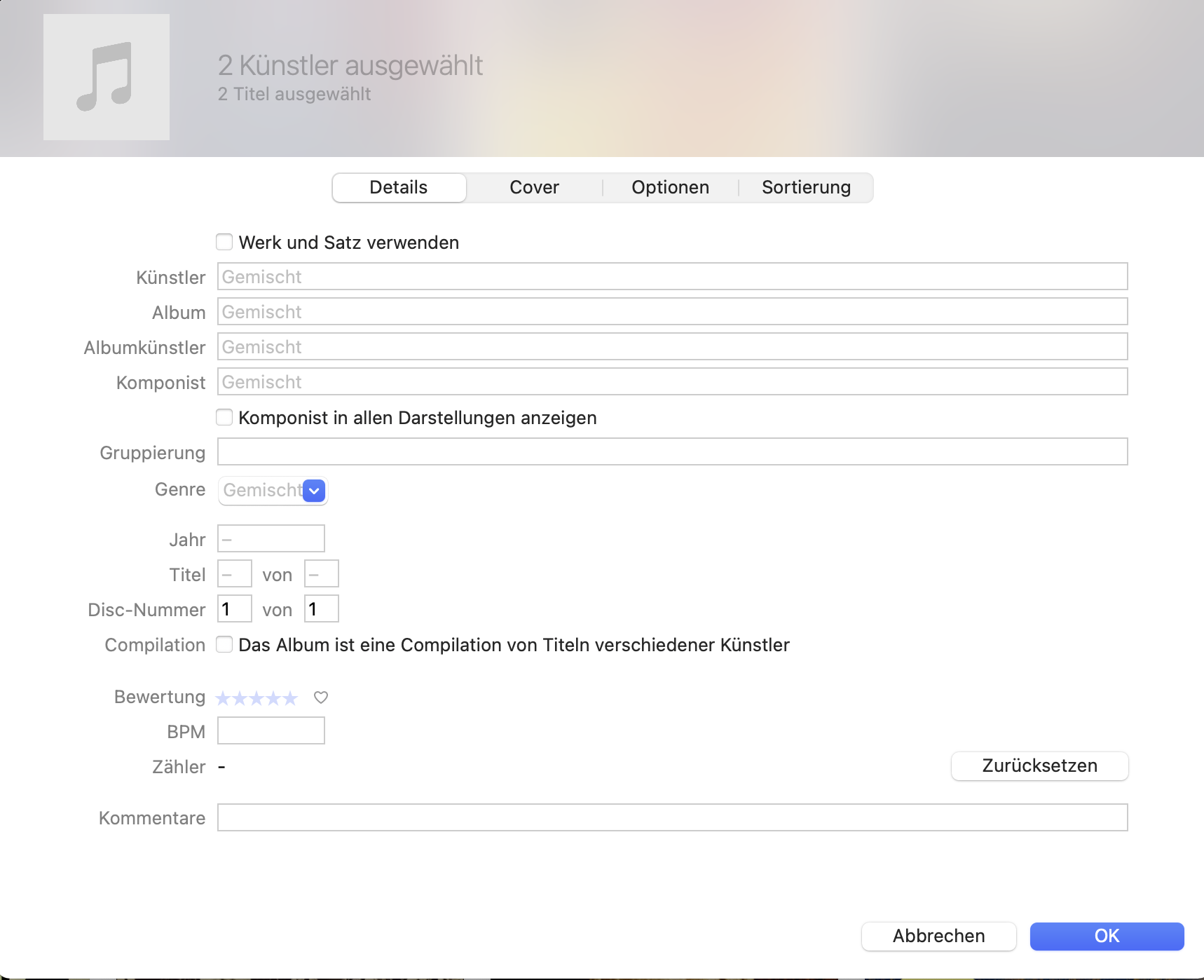 ja, es hat geklappt. Vielen Dank. Ich hatte es bisher immer über die Menüleiste versucht (Titel/Alben markiert - Menüleiste TITEL - INFO); und hier war INFO ausgegraut. Mit der rechten Maustaste ist der optimale Weg. Nochmals herzlichen Dank.
