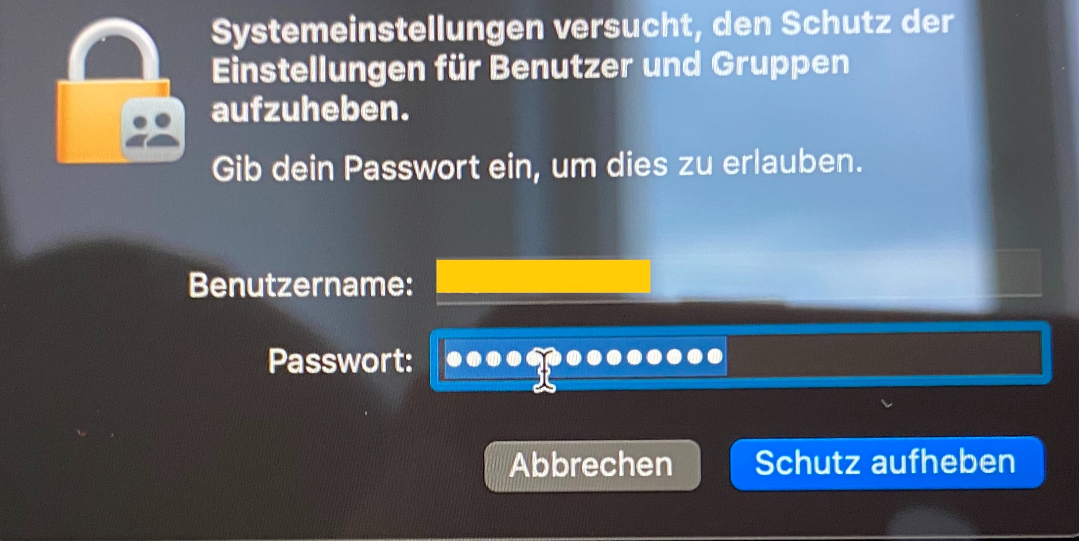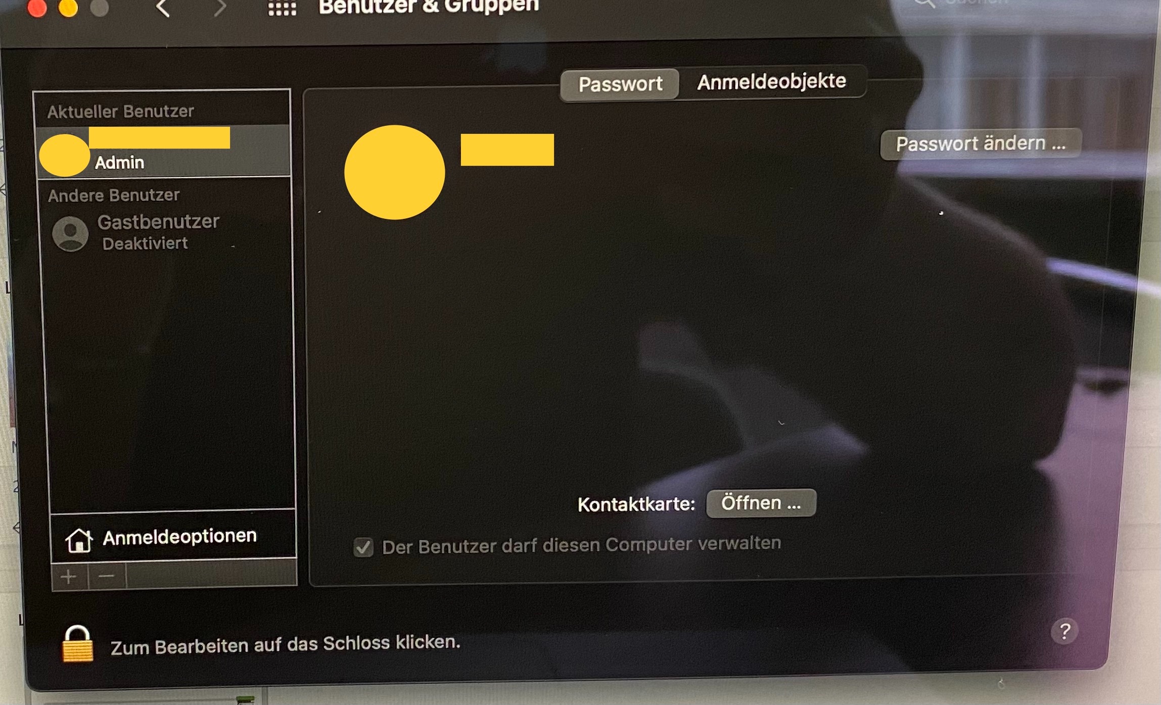 Ich kann als Benutzer meinen MacBook nicht verwalten.