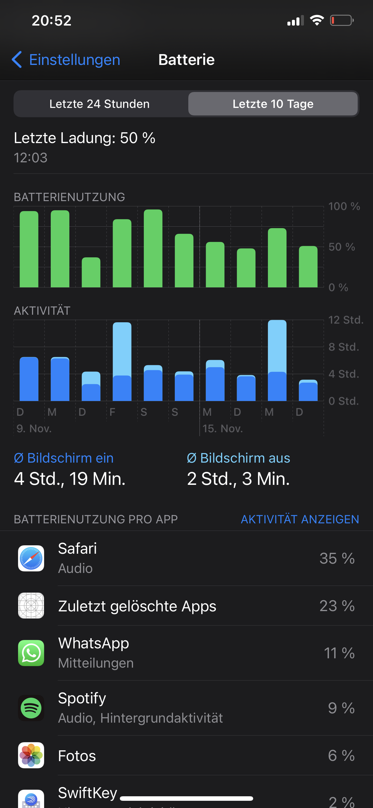 Ich habe seit ca 2 Wochen unerwartet hohen Akku Verbrauch . So 10 Prozent in 40 min . Keine Nutzung iOS zur zeit 14.3