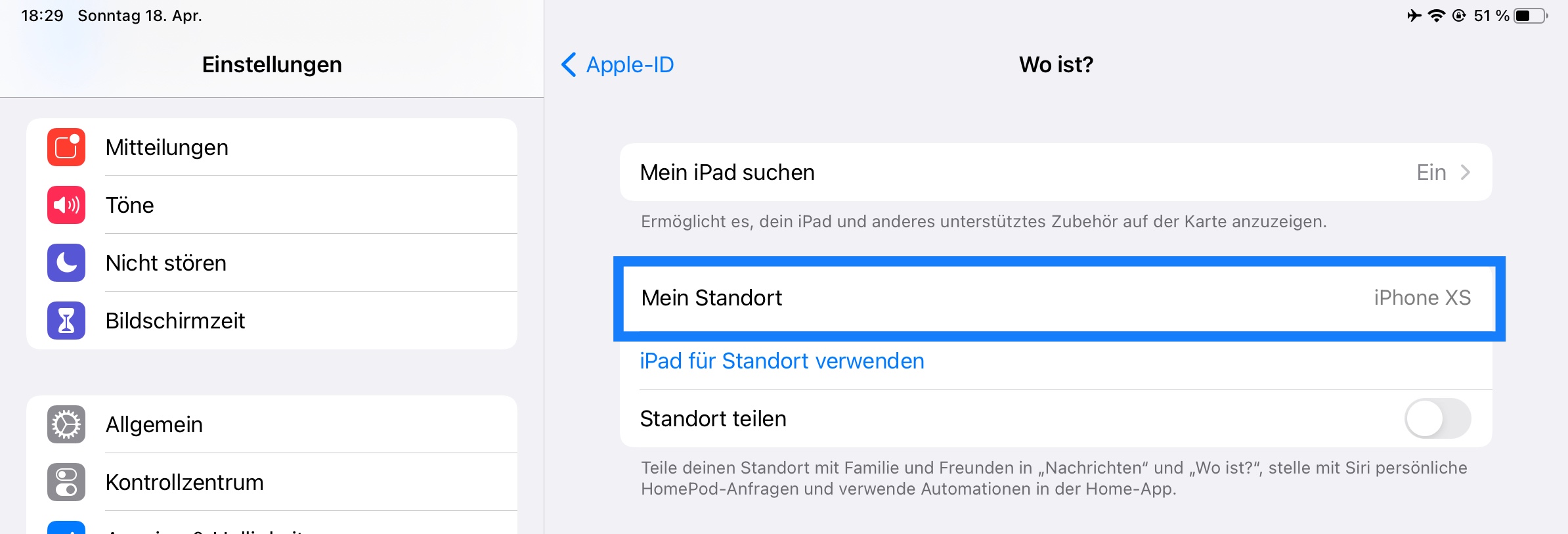 Einstellungen - Dein Name - Wo ist?