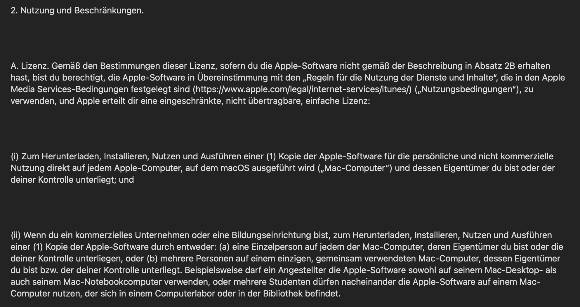 Bitte beachte die Lizenzvereinbarungen, welche auch im Apple App Store hinterlegt wurden, anbei ein Auszug, welcher deine Frage umfassend beantwortet: