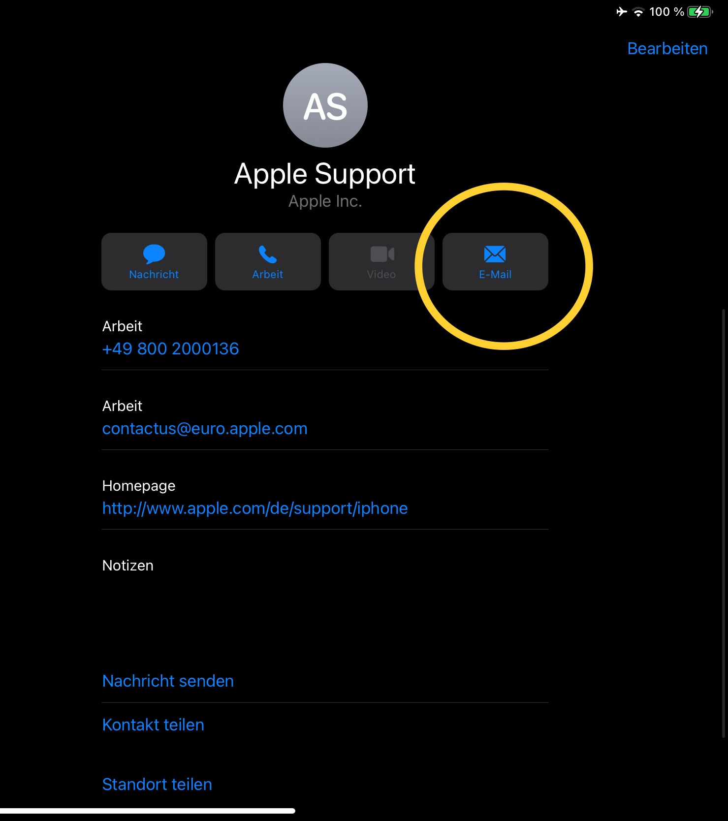 Wenn dieser Briefumschlag fehlt bzw. ausgegraut ist, hast du bei diesem Kontakt keine Mailadresse hinterlegt.