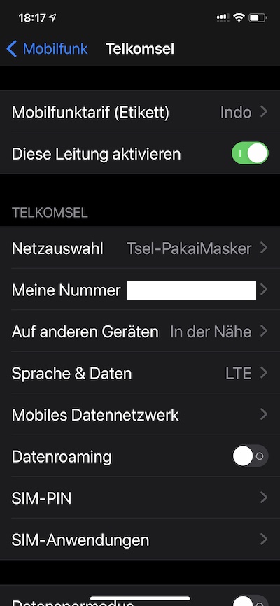 Da ich aber aus Kostengründen nur mein indonesisches mobiles Internet nutzen möchte, habe ich das eingestellt. Leider funktioniert es nicht. Wenn ich das Internet SIM-Karte im Handy meiner Frau teste, funktioniert alles. Es scheint also an den Einstellungen meines iPhones zu liegen, aber warum und wie sind die Einstellungen richtig?