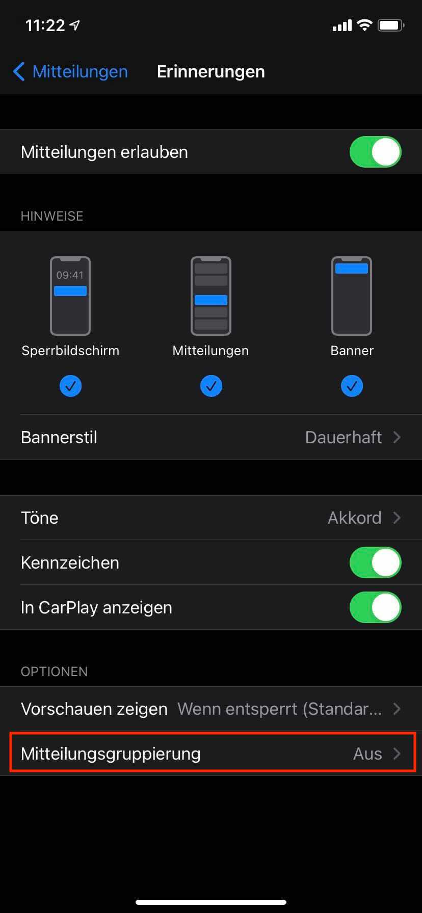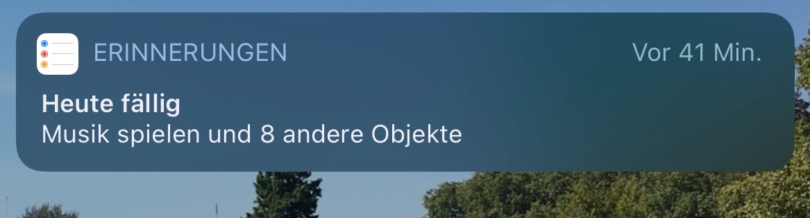 Dabei ist mir allerdings aufgefallen, dass die an einem Tag fälligen Tätigkeiten frühs als „Task1 + X Erinnerungen“ auf dem Sperrbildschirm angezeigt werden, anstatt als einzelne Erinnerungen.