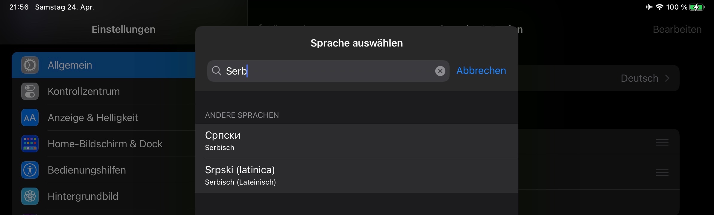 iPhone-Sprache auf serbisch (kyrilisch) eingestellt werden?