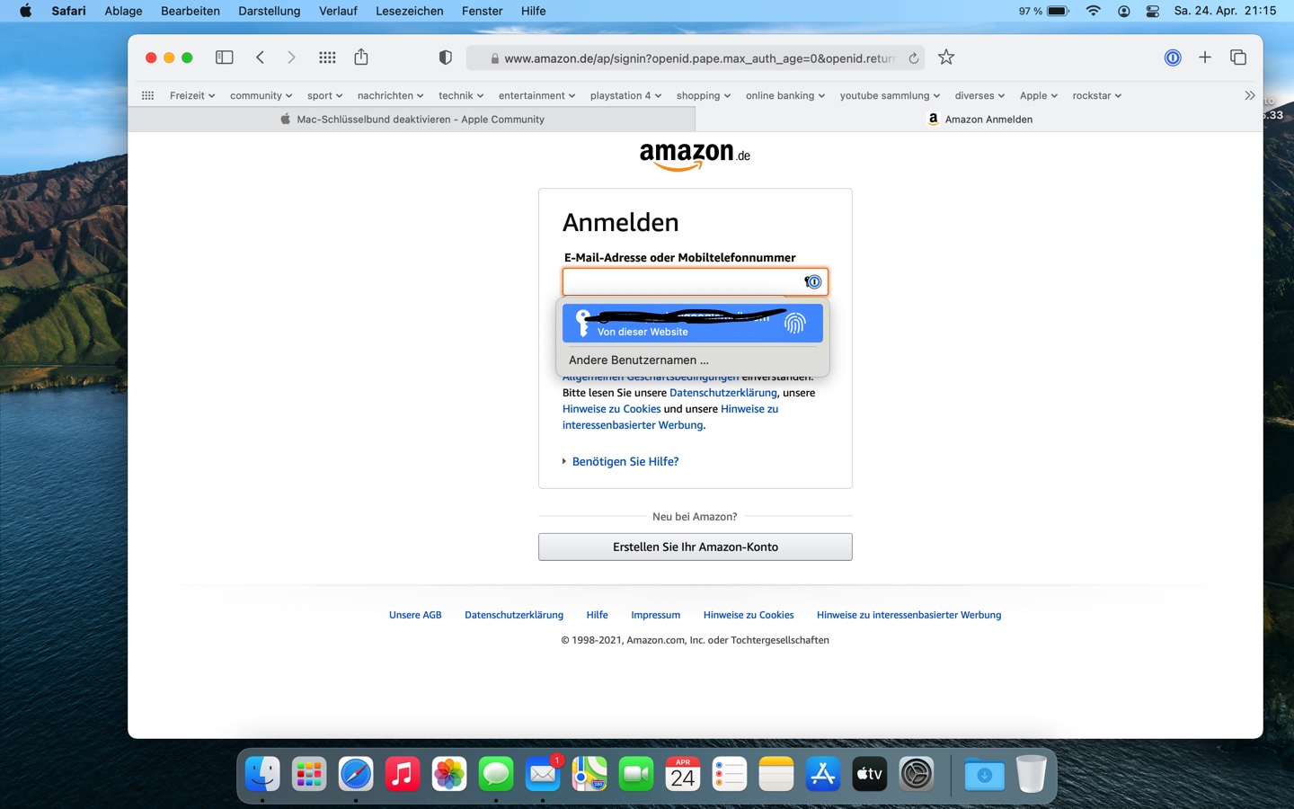 Dieses Problem habe ich bei meinem MacBook. Hier habe ich ebenfalls den Schlüsselbund in den iCloud Einstellungen deaktiviert, allerdings erhalte ich trotzdem weiterhin bei Formularen den Schlüsselbund über dem 1Password Manager (siehe Screenshot). Ich bin ratlos. Habe bereits die SuFu benutzt, doch jegliche Antworten haben bei mir keine Abhilfe gebracht. Hat jemand eine Idee was hier los sein könnte?
