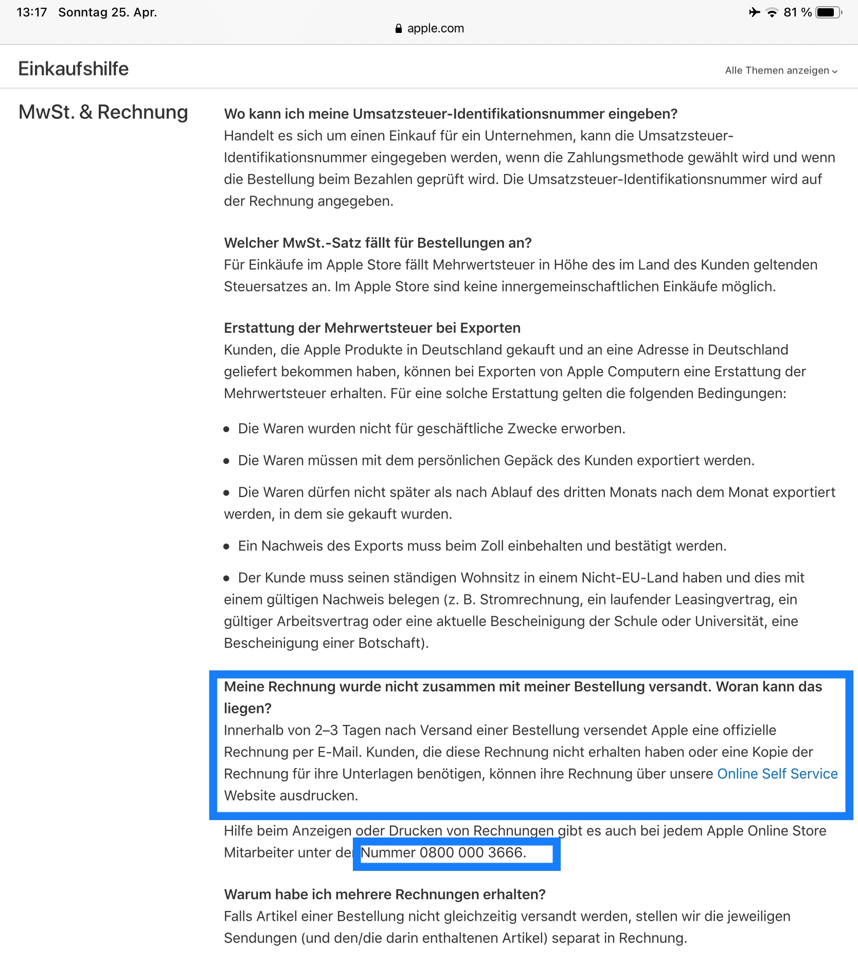 Ich will einfach nur eine Rechnung für mein Unternehmen (welches eh bereits im Apple Shop / bei meiner Apple ID gespeichert ist.