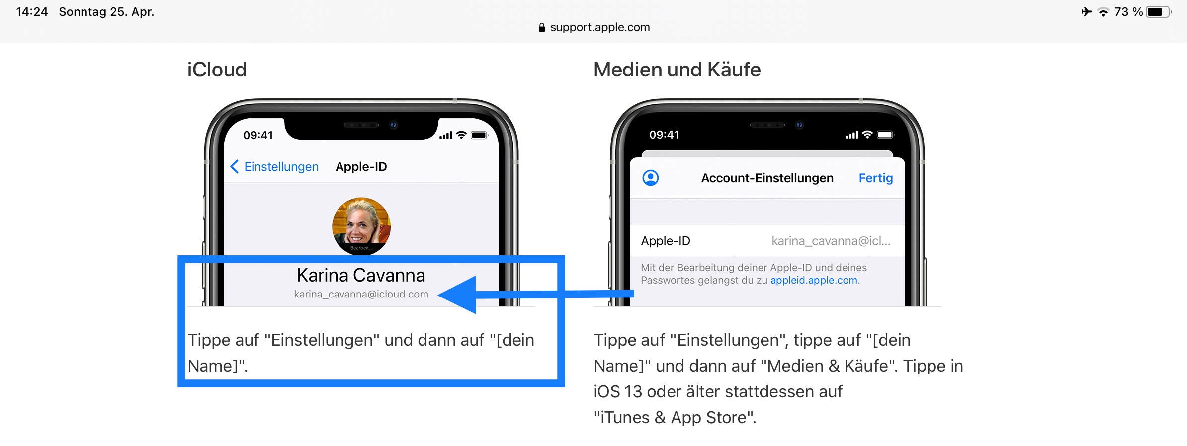 Wenn nicht, kontaktiere den Apple Support 0800 2000 136.