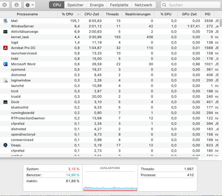 schau doch mal in der Aktivitätsanzeige nach welcher Prozess die CPU so stark auslastet.