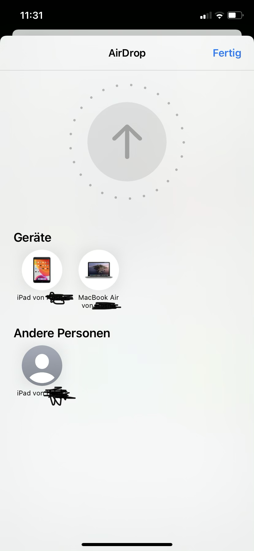 Beim Airdrop werden meine Geräte separat aufgelistet (siehe iPad), aber wenn ich unter dem Feld Geräte auf mein iPad klicke funktioniert es nicht, nur beim Feld 'andere Personen', genauso ist es am bei meinem iPhone.
