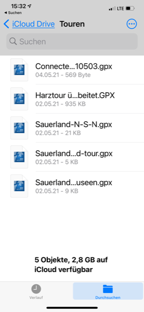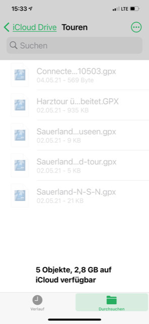 ich speichere Motorrad-Touren mit Calimoto oder Kurviger aus dem PC-Browser in der iCloud, als .gpx Datei.