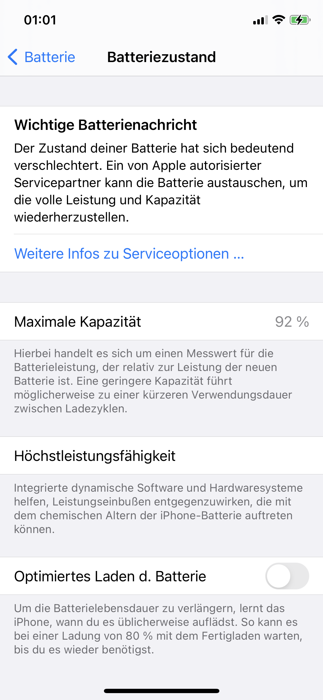 Habe ein 11 pro trotz Batteriezustand maximale Kapazität 92% steht auf dem Display Service