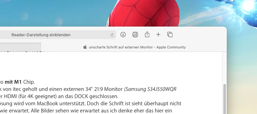 Ich bekomme auch ein Bild und die Auflösung wird vom MacBook unterstützt. Doch die Schrift ist sieht überhaupt nicht gut aus, unscharf bzw. Kantig. Also nicht wie erwartet. Alle Bilder sehen wie erwartet aus ich denke eher das hier ein Problem mit der Skalierung oder Anpassung der Schrift Seitens macOS vorliegt.