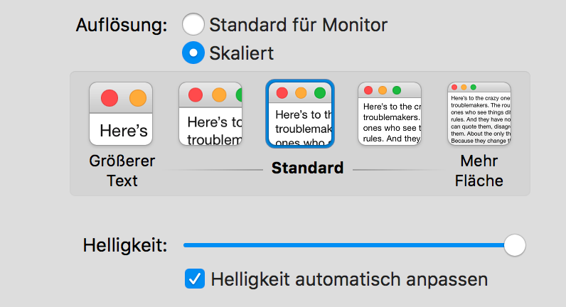 Mir ist bewusst das ich kein Retina Display angeschlossen habe, aber das die Schrift so aussieht, habe ich nicht erwartet. Ich habe ein Windows PC mit einem Monitor der gleichen Auflösung laufen und da sieht die Schrift wesentlich besser aus.