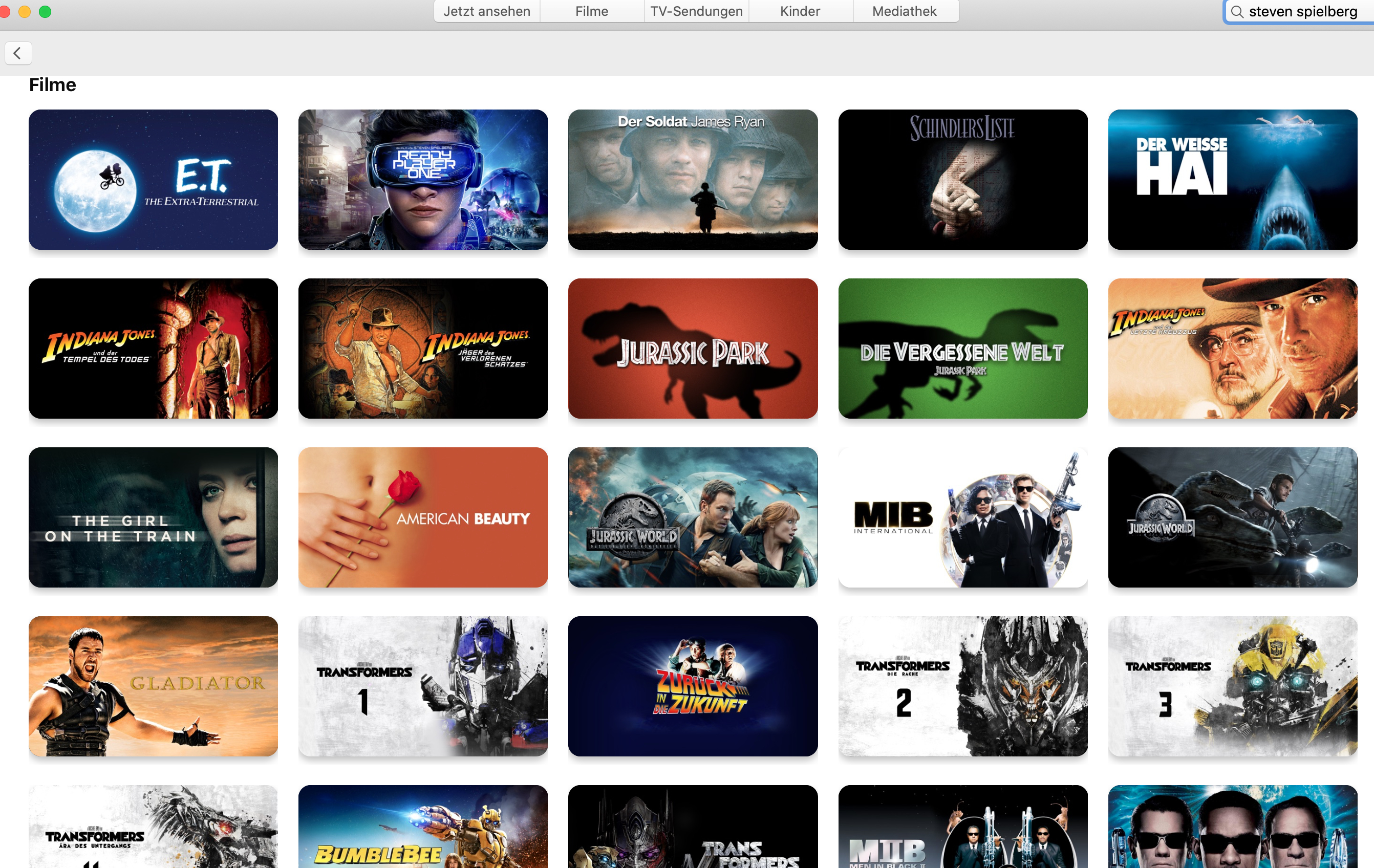 Suche unter Filme "Steven Spielberg" Ergebnisse kommen, aber auch Filme mit denen Spielberg nix zu tun hatte ( Gladiator ).