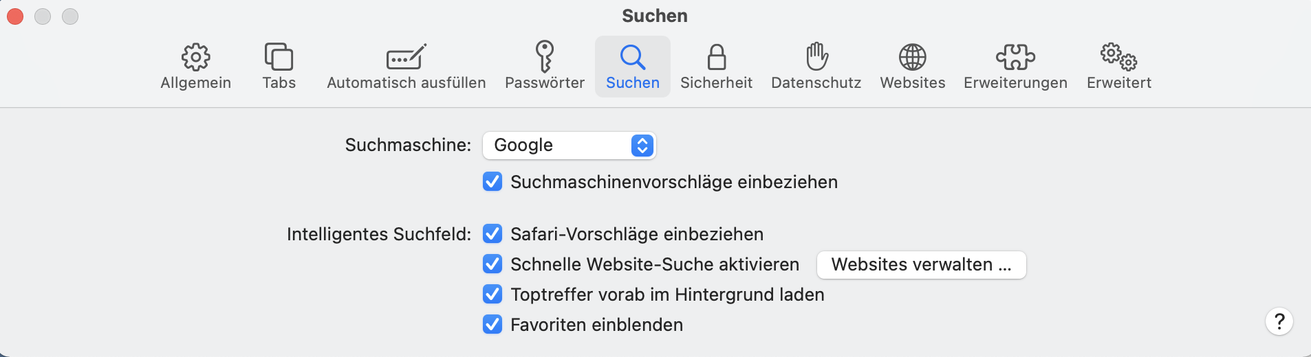 in Safari im Menü > Einstellungen > Suchen > Suchmaschine: auswählen