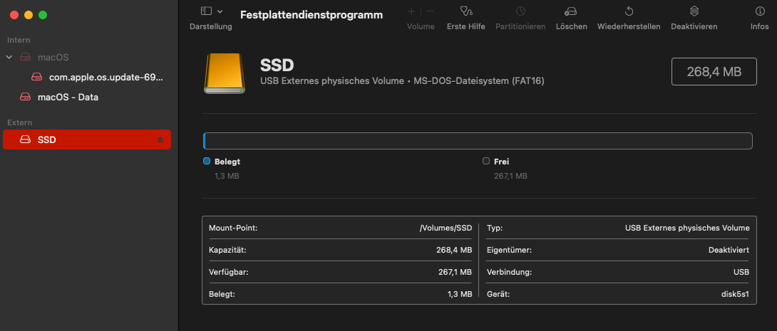 ich habe einen bootfähigen USB-Stick erstellt, den ich nun wieder in den Ursprungszustand zurückbringen will. Öffne ich das Festplattendienstprogramm und lösche diesen, dann ist trotzdem der Speicherplatz deutlich geringer.