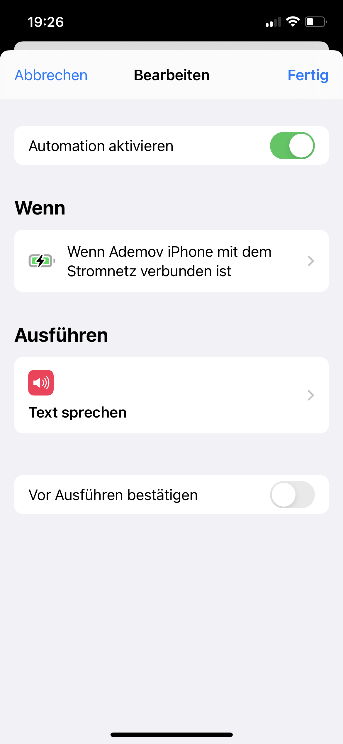Habe beim Stromkabel ( Light.) über Kurzbefehle beim anschließen immer ein Danke gehört also einen Text sprechen eingefügt ! Habe 3 iPhones und bei allen geht es nicht mehr ! Habe auch nichts verändert. Im Display steht Fehler bei der Ausführung. Natürlich Neues update und alles gelöscht und neu versucht es geht einfach nicht immer wieder die anzeige Fehler bei der Ausführung