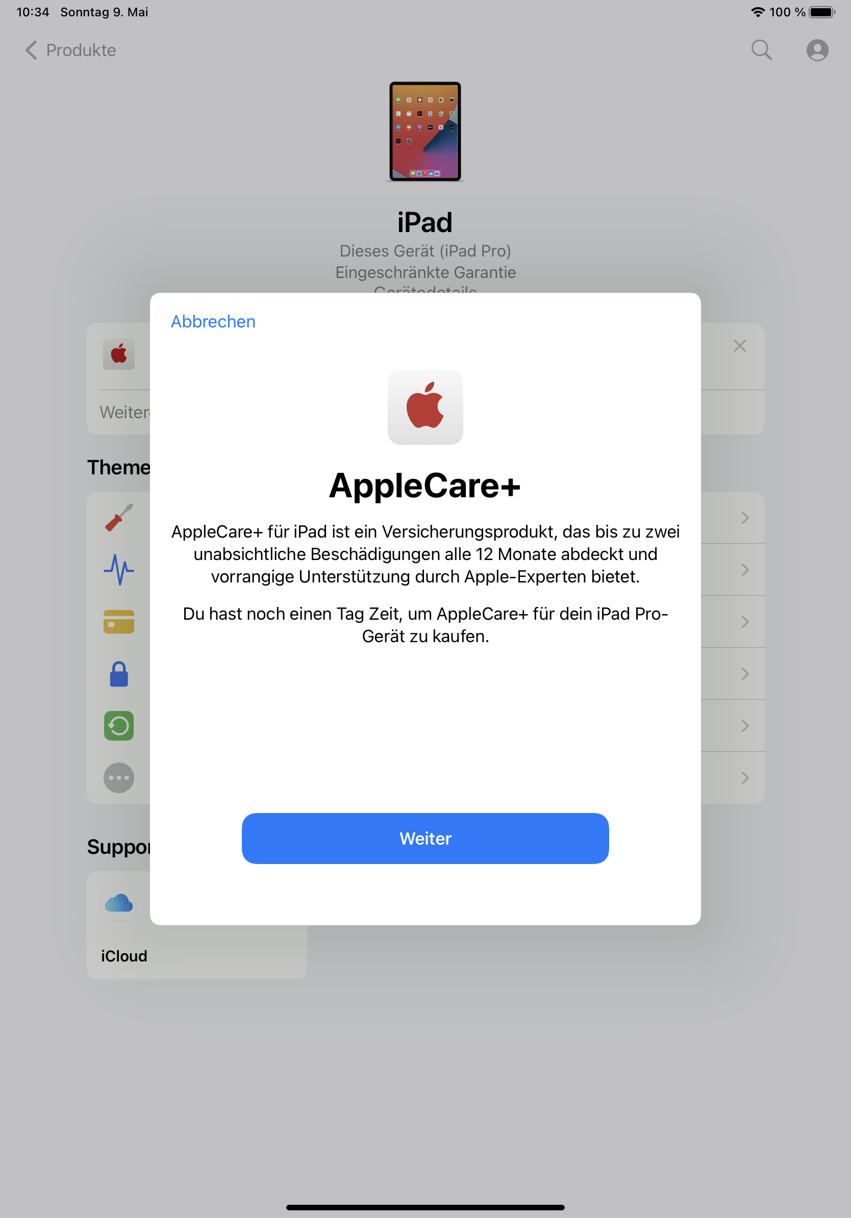 Apple Care Service Anmeldung für iPad Pro geht nicht