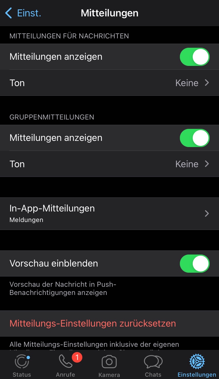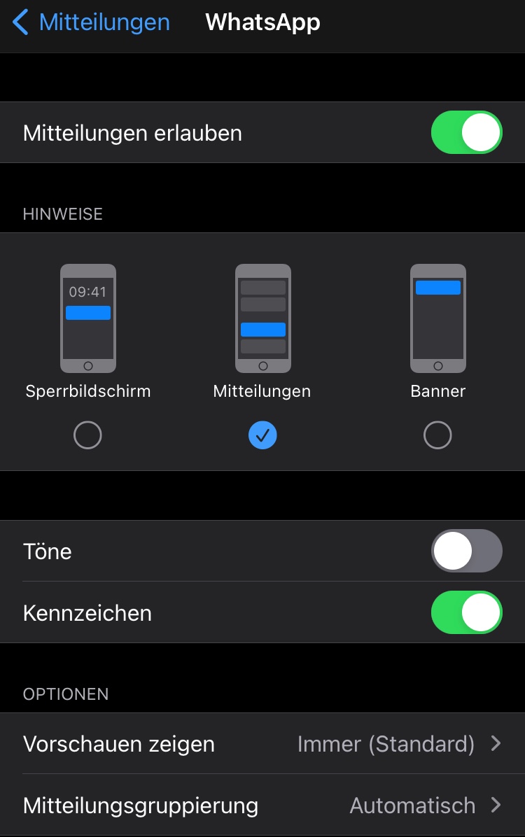 Zuerst in den Systemeinstellungen—>Mitteilungen—>Whatsapp konfigurieren
