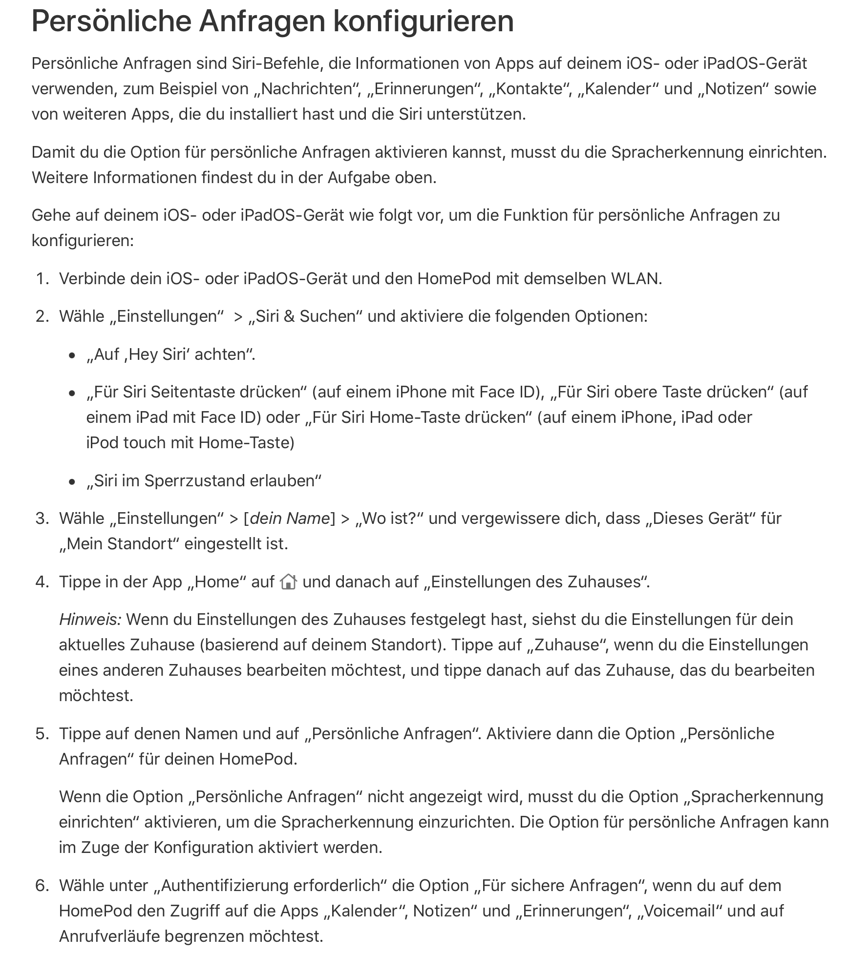 Hast du dafür "persönliche Anfragen" konfiguriert? Tätigen persönlicher Anfragen auf dem HomePod