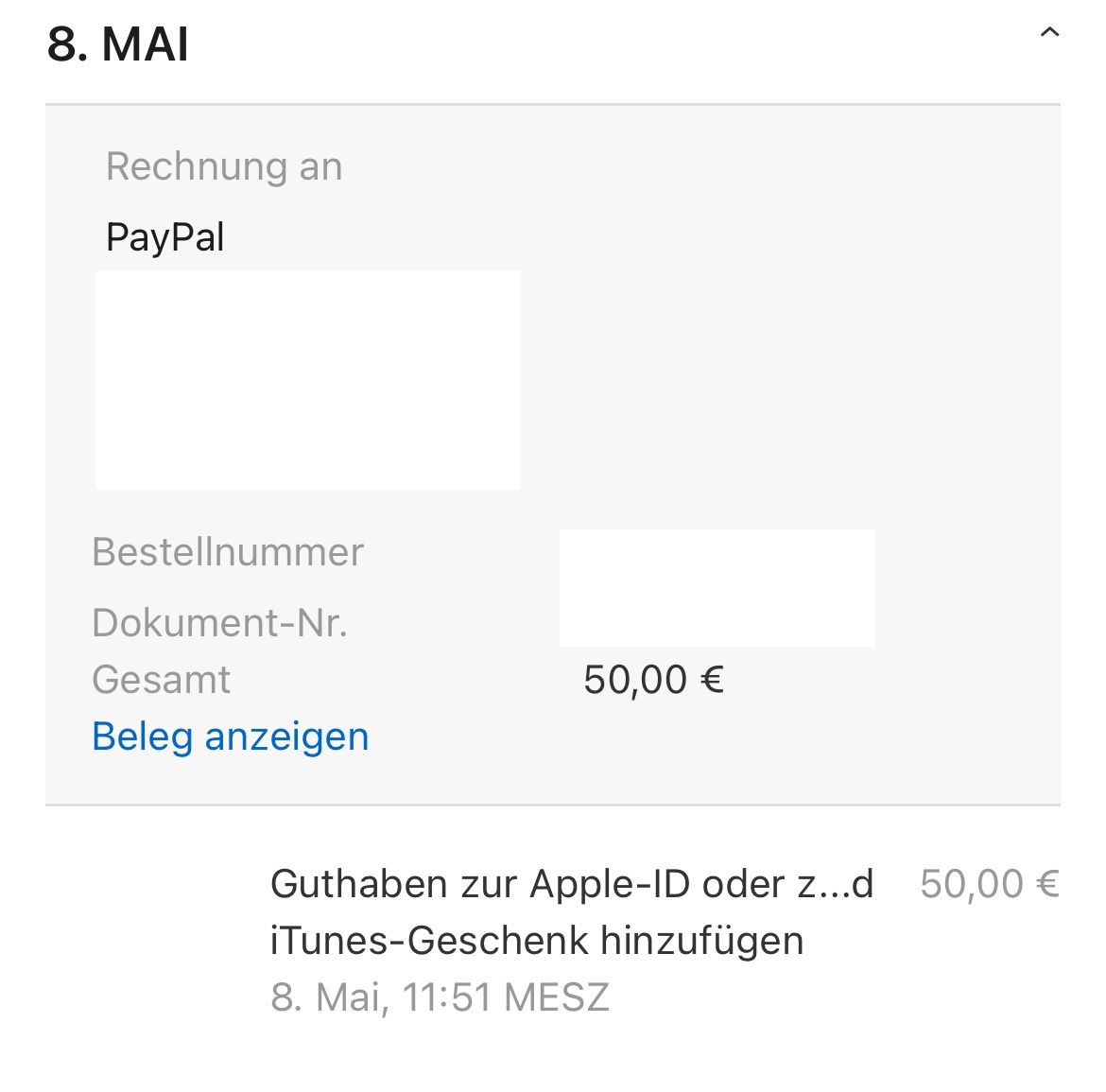 Guten Tag, am 8. Mai habe ich versehentlich 50€ auf meine App Store geladen und möchte diese wieder zurück erstattet haben