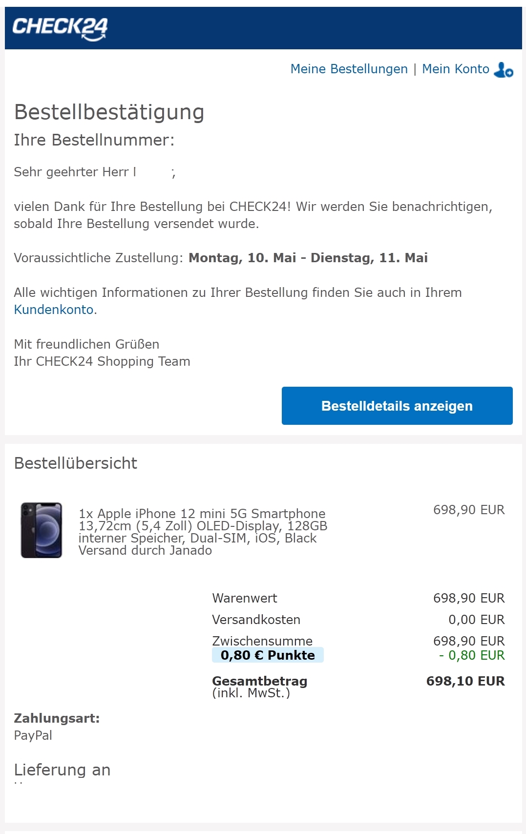 Habe das iPhone 12 mini am 06.05.2021 bei CHECK24 gekauft. Warum nur 9 Monate Gewährleistung?