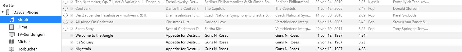 iTunes: Grau hinterlegte Musik unter "Auf meinem Gerät"