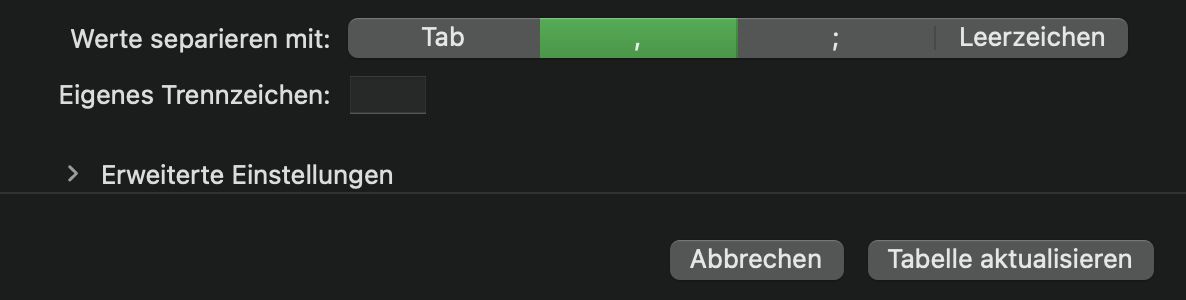 Nach Import von CSV-Datein in Numbers durch Kommata getrennte Daten in einer Zeilen in verschiedene Spalten umwandeln