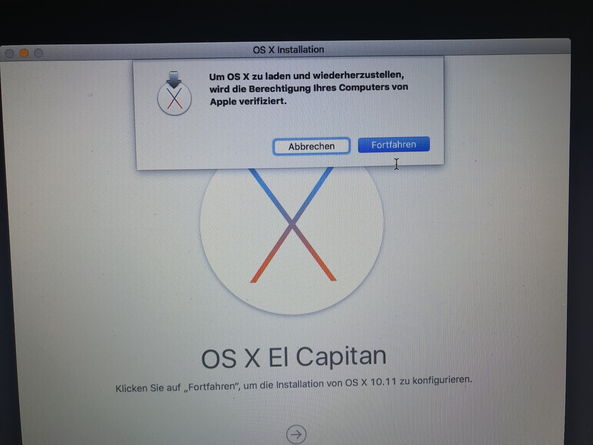 ich habe meinen MacBookPro (2015) auf Werkeinstellung gebracht und möchte ihn neu "aufsetzen"- was mir nicht gelingt.
