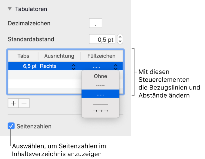 Pages - Füllzeichen im Inhaltsverzeichnis (mit iPad)