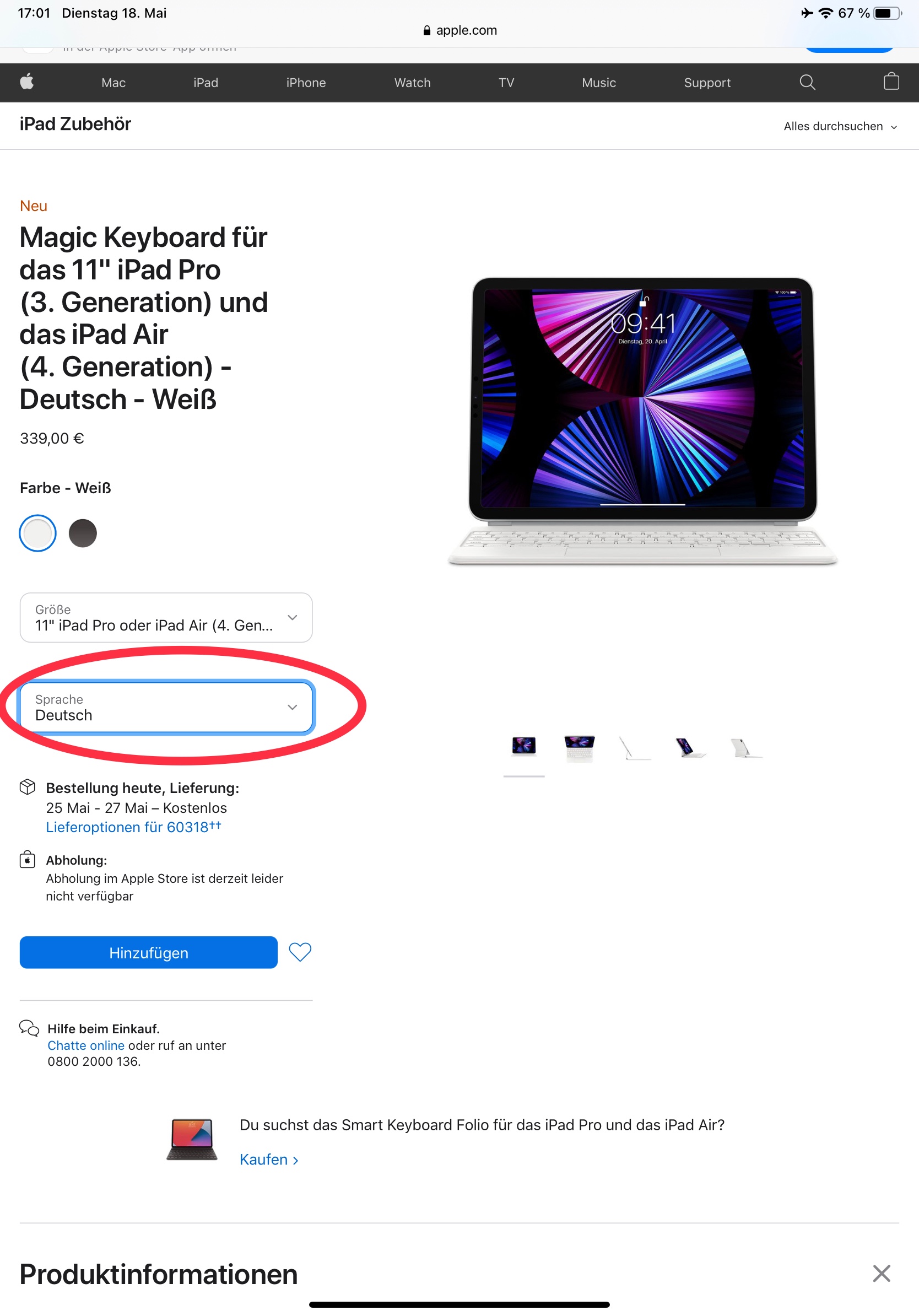 Wo kann ich im Appel Online Shop die Tastaturen Art bestimmen? Brauche ein Qwertz.