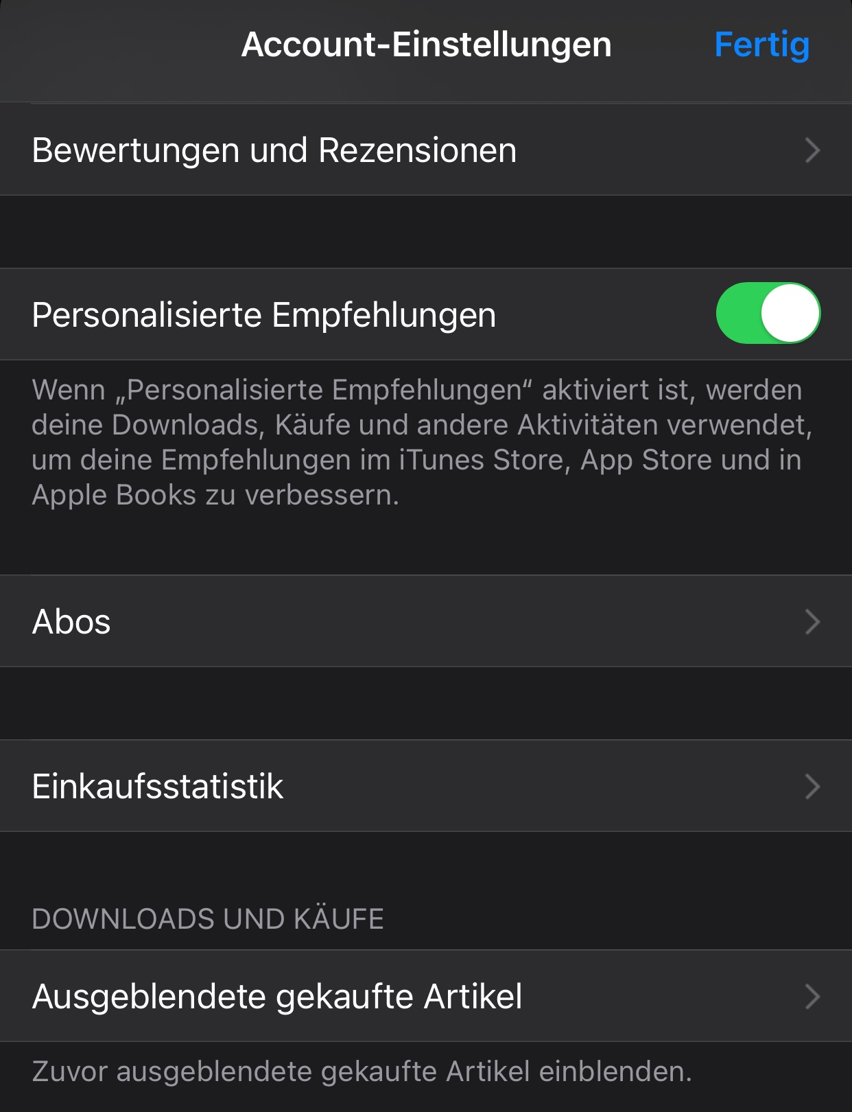 Ausgeblendete gekaufte Artikel löschen