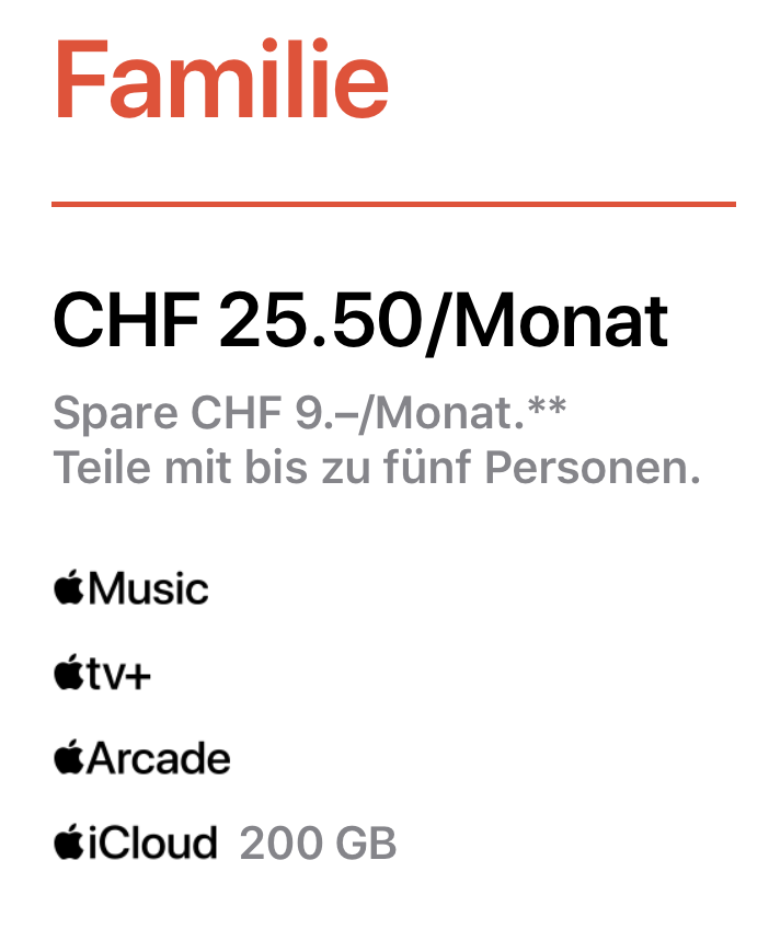 Zurzeit verwende ich Apple Music Familie für 19Fr + 3 Fr Cloud Speicher. Wandle ich dies in ein Abo One löscht es mir die erwähnten Abos?