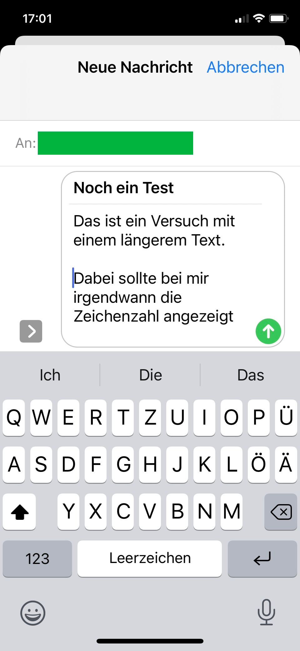 iPhone mit iOS 14.5.1 - SMS Zeichenanzahl wird nicht angezeigt