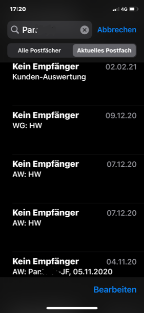 Mail app zeig bei Suche "kein Empfänger" obwohl die E-Mail Empfänger hat