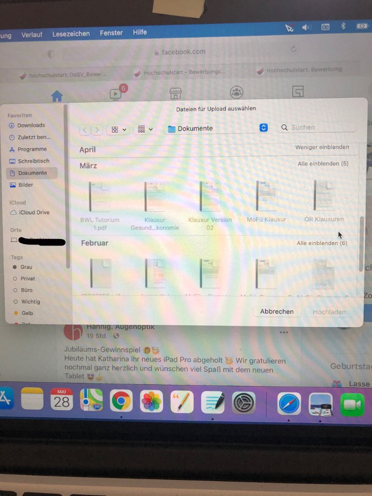 Wenn ich über Facebook oder auf anderen Internetseiten Dokumente oder Fotos von meinem Mac hochladen möchte, sind alle Dokumente und Fotos grau hinterlegt. Habe ich irgendwas falsch eingestellt oder wo liegt das Problem?