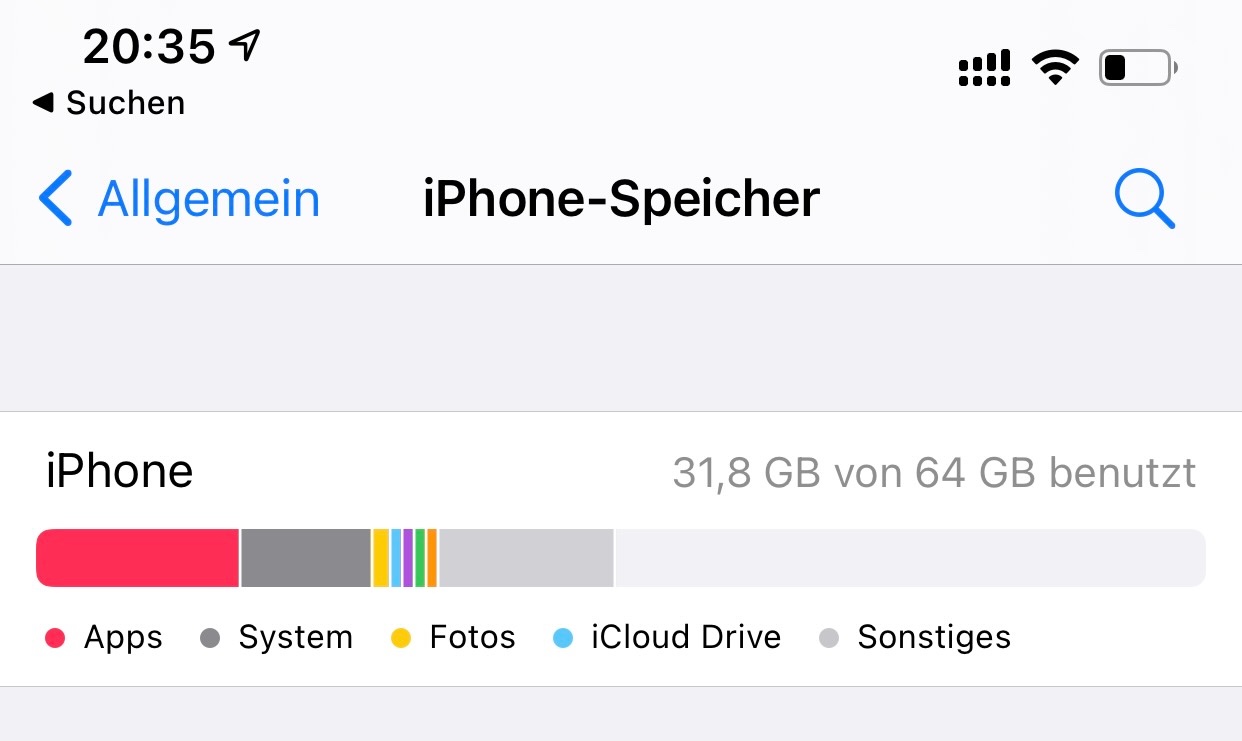 Gestern wollte ich beispielsweise 6,78 GB importieren. In den Einstellungen des iPhones steht, dass 31,8 GB von 64 GB benutzt werden. Somit hätte der Import eigentlich problemlos funktionieren sollen.