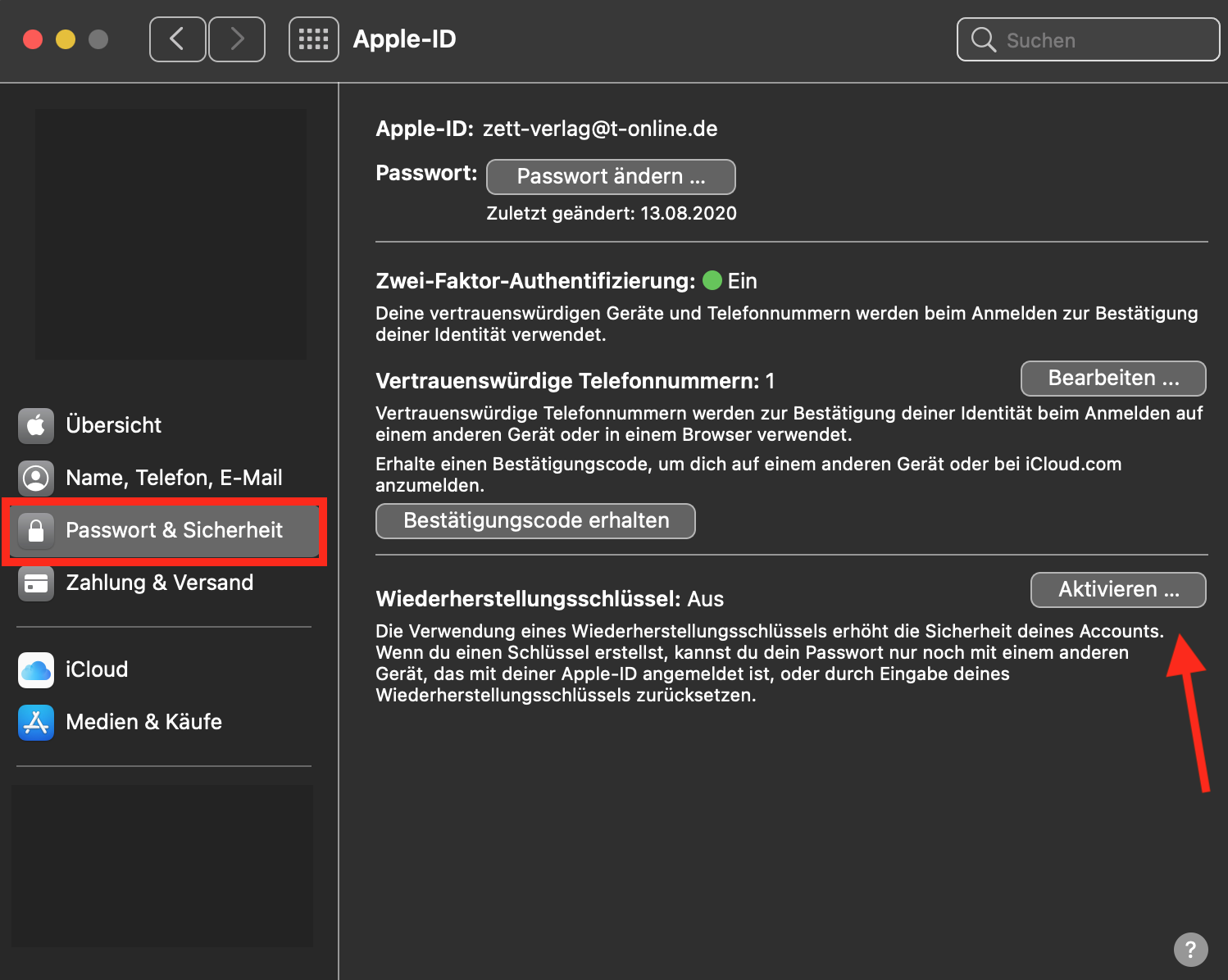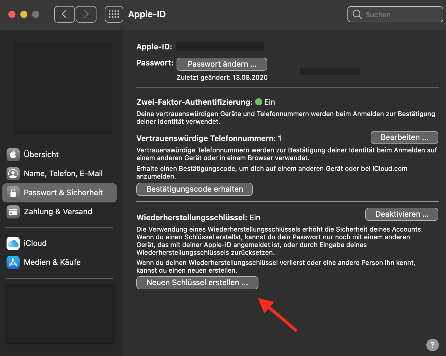 Wenn ich mein Ipad in die iCloud (die hab ich auf meinem MBAir auf 50gb eingerichtet, aber zuerst hatte ich sie von meinem ipad in der freeversion genutzt, was dann nicht mehr ging) einhängen möchte, fragt er mich nachdem ich das richtige Passwort für meine AppleID eingegeben habe nach einem RK-xxxx-xxxx-xxxx. Den finde ich nirgends. Ich habe für die iCloud auch kein separates Kennwort oder so. Was muss ich jetzt tun, damit es funktioniert? Und bitte langsam und ausführlich, ich kann nicht so schnell lesen! ;)