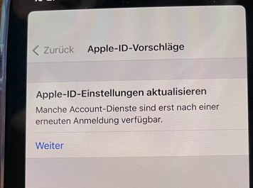 Beim Einrichten meines neuen iPhones bleibt es jeweils beim unteren Bild hängen. Der "Weiter"-Button reagiert nicht, "zurück" ist grau hinterlegt.