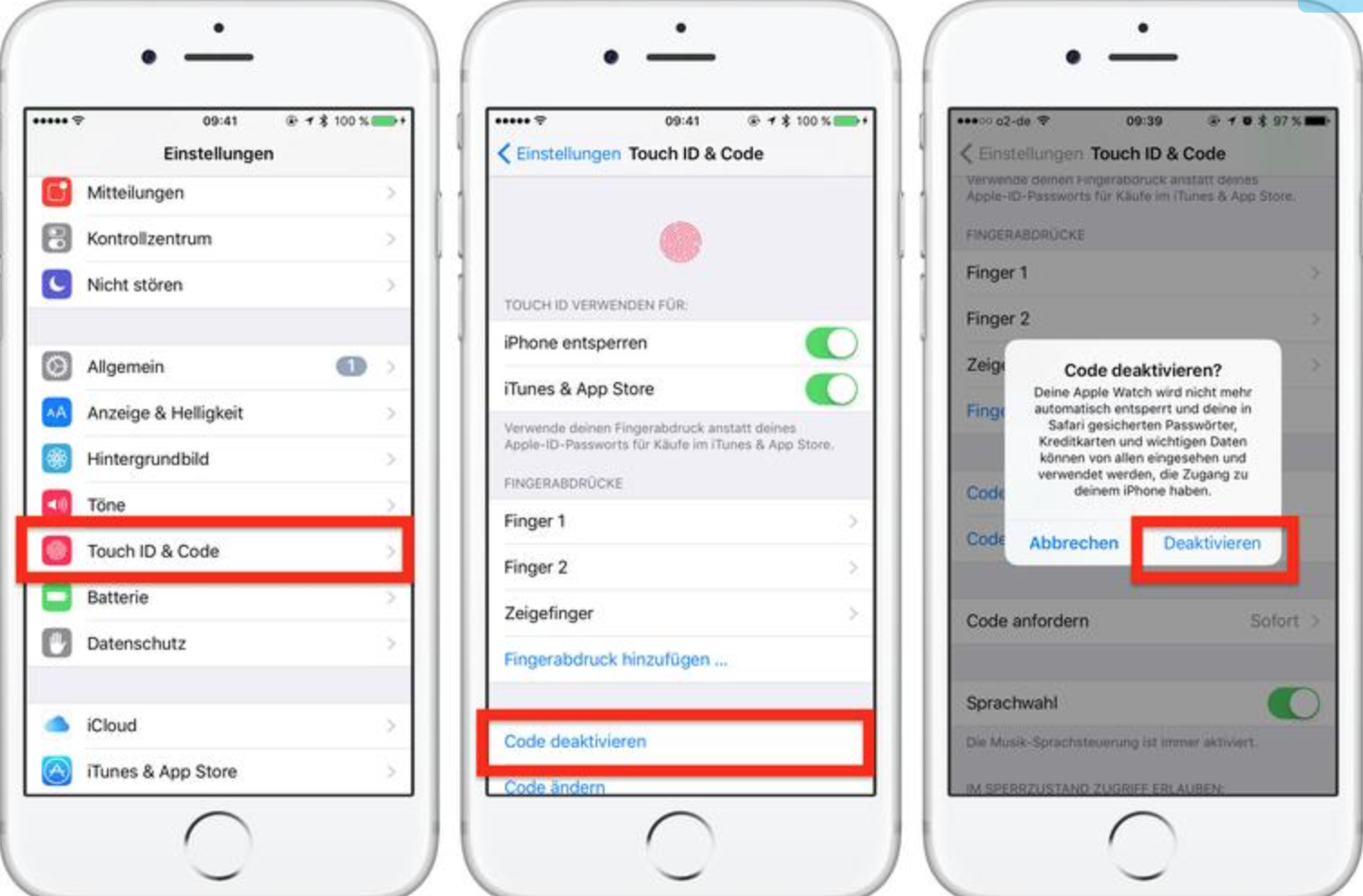 Wenn dein Update fehlgeschlagen sein sollte, deaktiviere den Sperrcode für die Zeit des Updates