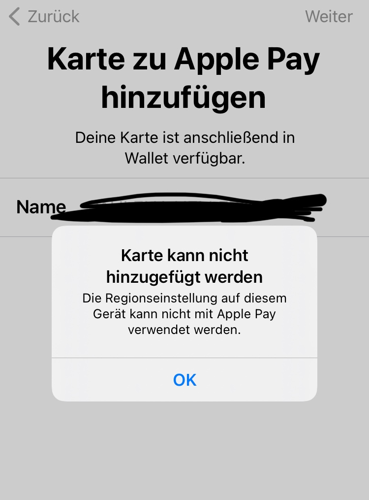 Wenn ich meine karte bei wallet hinzufügen möchte sagt wallet dass apple pay in meiner region nicht verfügbar ist. Aber apple sagt es ist verfügbar. Wenn ich den auftrag über pushTAN aufgebe, funktioniert es auch nicht. Ich hab inzwischen ein neues iPhone (Fehlermeldung bei beiden handys), neuste ios version, Sparkasse funktioniert mit wallet offiziell genauso wie meine region (bei mir beides nicht). Alles probiert, Hilfe?