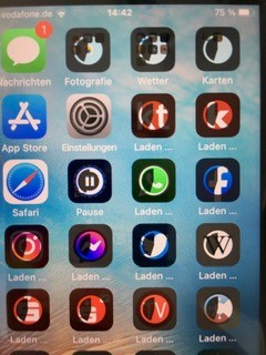 Es hat den Anschein, als hätte sich der Vorgang aufgehängt. App Store, Internet und WLAN-Verbindung stehen. Ich kann auch neue Apps runterladen!?!?!? Back up (iTunes) ist vorhanden.