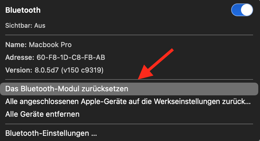 Fahre deinen Mac herunter, schalte ihn dann ein, und halte sofort diese vier Tasten gleichzeitig gedrückt: Option, Befehl, P und R. Lasse die Tasten nach etwa 20 Sekunden los. Dadurch werden die Benutzereinstellungen aus dem Arbeitsspeicher gelöscht und bestimmte Sicherheitsfunktionen wiederhergestellt, die möglicherweise verändert wurden.